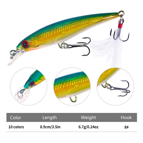 HENGJIA 9CM 6.7G Minnow Lure Bait 10pcs box set